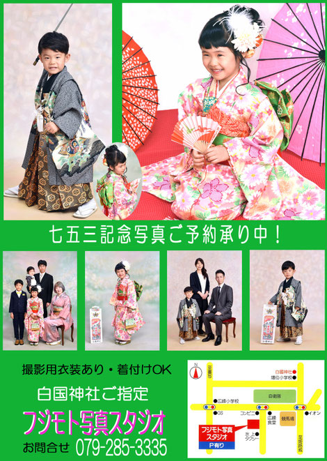 ☎079-285-3335 フジモト写真スタジオ迄 平日も予約OKです。